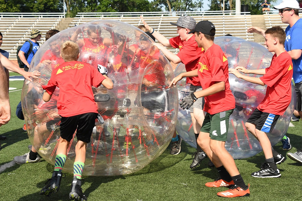 OUR FOOTBALL CAMP is designed to help young men grow in their understanding of the game while helping them to grow in leadership, faith and integrity. Competition is a great way to develop perseverance and confidence. Through team activities, drills and scrimmages, we help the campers develop their skills and their character. And we make sure they have fun!”